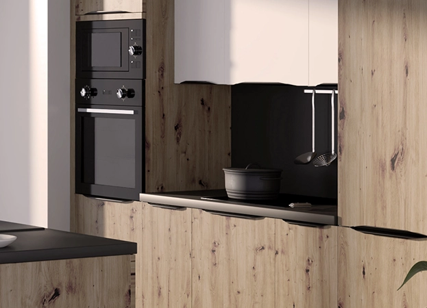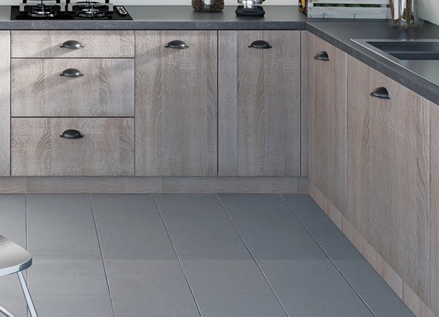 Disponible en différents décors bois, Zoé reprend les codes du classique avec un cadre apparent, mais dans une version revisitée. L’effet bois texturé en fait un choix idéal pour créer une ambiance conviviale, que vous soyez dans un appartement familial ou dans une maison avec cuisine ouverte.